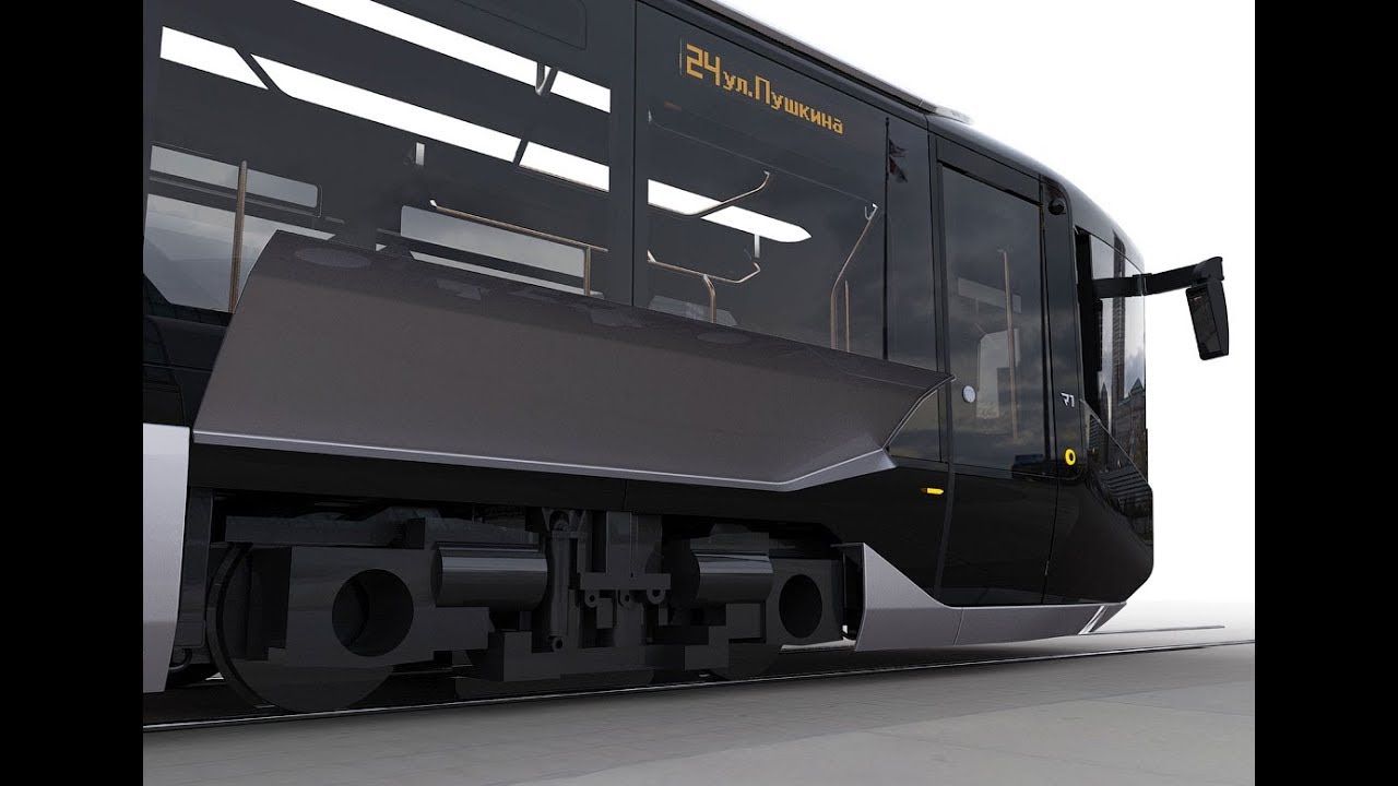 Трамвай R1 – вторая машина российского производства, которая отличается низкопольным и футуристическим дизайном: окрашен в черный цвет, а кабина имеет обратный угол наклона примерно в 6 градусов. По мнению авторов проекта, такая уникальность повышает кругозор для водителя, не так поддается нагреванию солнцем и значительно ниже бликует. Черный цвет был выбран неспроста: благородство черного уральского самоцвета в оправе из металла, в зеркальной поверхности которого отображается практически весь город, став неотделимой его гармонической частицей. Для кузова трамвая R1 использовались особые композиционные материалы. Вместимость пассажирского салона – около 250 людей. В основную комплектацию входит навигация ГЛОНАСС, вай-фай, GPS, а ещё аудиосистема, благодаря которой можно легко подобрать музыку под погодные условия, время суток. Поручни обладают антибактериальными свойствами и оборудованы системой подогрева, которая исключает появление наледи. Практически 79,5% комплектующих деталей – российского производства, прочее – Австрия (16%) и Германия (4,5%).
